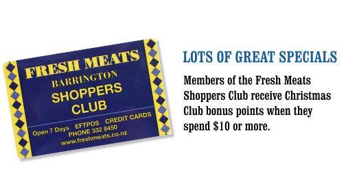 Members of the Fresh Meats Shoppers Club receive Christmas Club Bonus points when they spend $10 or more.